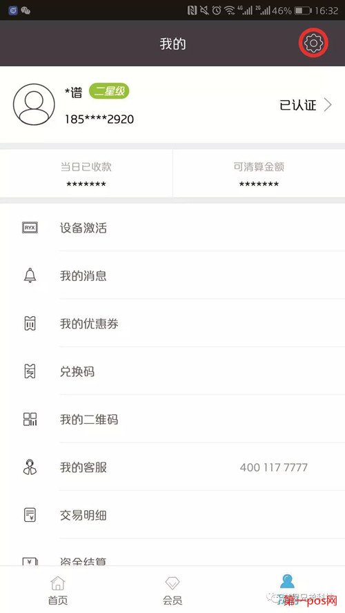第一步:登錄瑞和寶APP,點擊主界面“我的”,看看自己名字后面的等級,如果是一星級或者是二星級證明我們的信用卡認證已經通過了,如果無等級,那證明信用卡認證未通過,或者未認證,信用卡未認證的無法刷卡。如果已經是一星級或者二星級,點擊“激活設備”